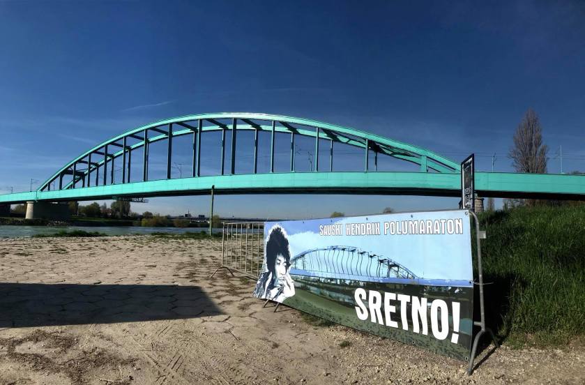 No, osim nasipa, trka je u raznim svojim inačicama spajala skoro sve zagrebačke mostove. Zagreb, nažalost (ali na sreću trkača), nije grad na svojoj rijeci, kao što je Prag grad na Vltavi, Budimpešta na Dunavu ili Pariz na Seini. Zagreb je kroz mnoga stoljeća imao dosta prostora za razvoj, od Medvednice pa do rijeke Save i kao da se nije mogao odlučiti prijeći na onu drugu stranu obale. No, kada ju je napokon preplivao, trebali su mu premosnice, i tu u biti počinje priča o Hendrixovom mostu, današnjem simbolu grada na rijeci, te života i zajednice na njoj. On je najimpresivnija, pragmatična savska vizura, koja većini građana predstavlja trenutak odmora i kontemplacije prilikom prelaska rijeke. Most, poput Hendrixa, predstavlja simbol bunta, slobode, jedinstva i kreativnosti. Podignut je 1939., a zapravo je izgrađen kao zamjena za stari željeznički most s kraja 19-og stoljeća, koji se nalazio dvadesetak metara dalje, i još uvijek se mogu vidjeti ostaci tog starog mosta.
