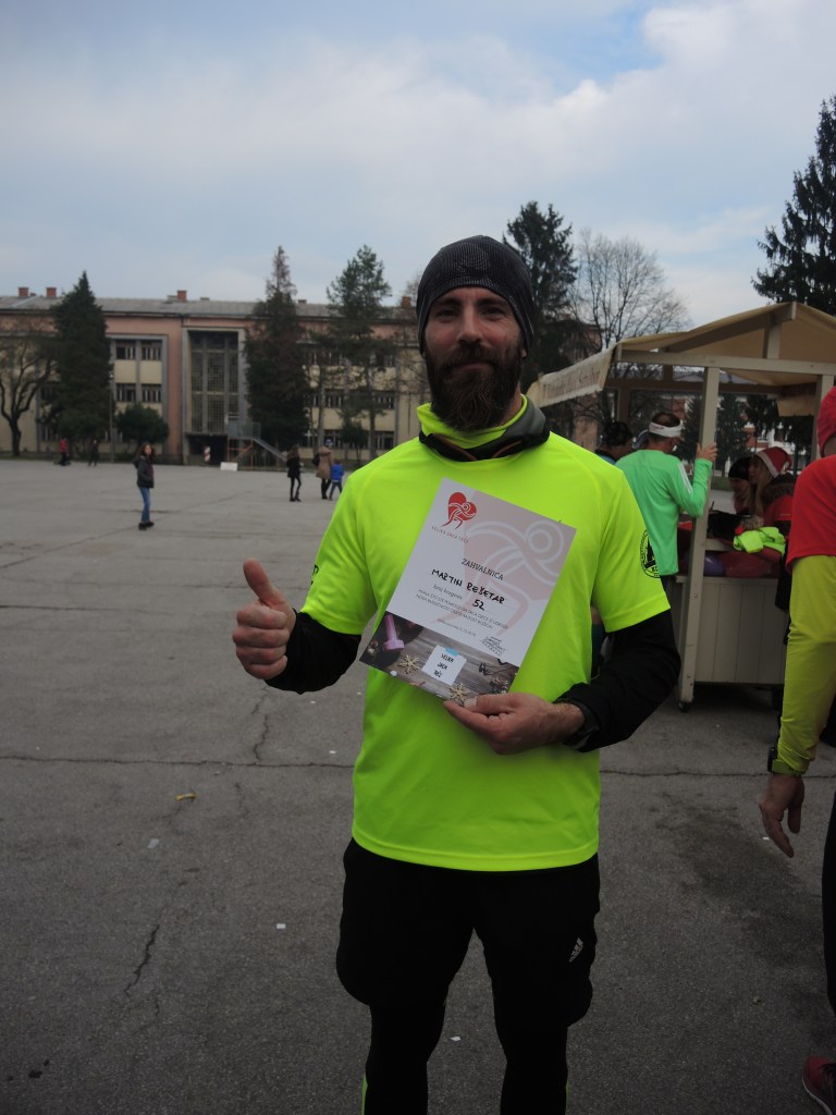 Ujedno, bio je to i dobar trening . Za mene, svakako. Sreo sam prijatelja iz rane mladosti. Povremeno se vidimo na kakvoj utrci, ali samo na startu jer Matko ide puno brže. Sa noge na nogu, održavali smo “conversational pace” na 5:10, stigao sam ispovijediti svoj ljubljanski “grijeh”, kako nisam uspio ići ispod dva sata. “Ajd, sad ćemo” – veli Matko.