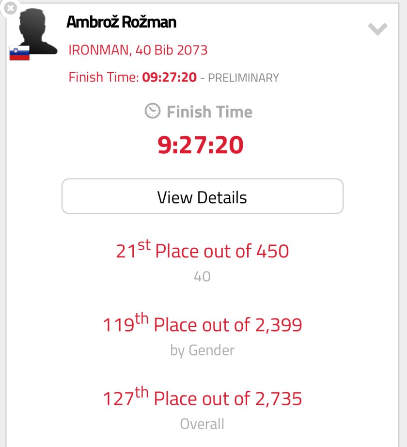 Posljednji u današnjem pregledu naših endurance freakova je dvostruki IRONMAN Ambrož Rožman, koji je jučer srušio svoj osobni i klupski rekord u toj, također nadnaravnoj disciplini, koja kombinira plivanje, biciklizam i trčanje. Za one koji ne znaju, puni Ironman se odrađuje na način da prvo plivate 3,9 kilometara, i za to imate maksimalno 2 sata i 20 minuta, nakon čega vas diskvalificiraju. Slijedi 180,2 kilometra bicikla za koje imate na raspolaganju 8 sati i 10 minuta, ili ukupno 10 sati i 30 minuta od starta, i na kraju još morate samo istrčati maraton od 42,2 kilometra za maksimalno 6 sati i 30 minuta, u ukupnom limitu od 17 sati od vremena starta.