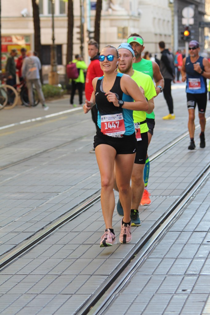 Polumaratonci. Prijavilo ih se 15. 14 je krenulo u 10:00 sa Trga Bana Jelačića i stiglo u cilj od sat i po do dva i pol sata od starta. Neki zadovoljni i prvi puta, neki najbolji ikad, neki istrčali još jedan u nizu, no svima je bio osmijeh na licu kada sam ih “zaskočio” sa kamerom negdje na stazi.