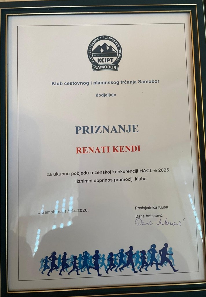 Na skupštini je i dodijeljeno priznanje i nagrada Renati Kendi za postignuće u protekloj godini – osvojeno prvo mjesto u kategoriji te 1. mjesto ukupno u poretku Hrvatske atletske cestovne lige za 2025. godinu!